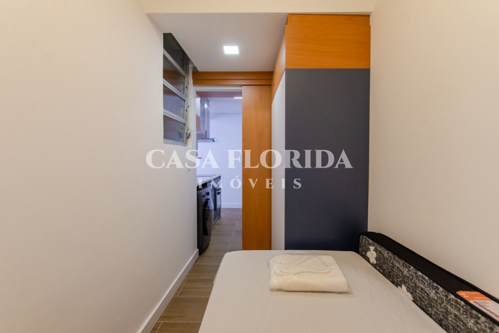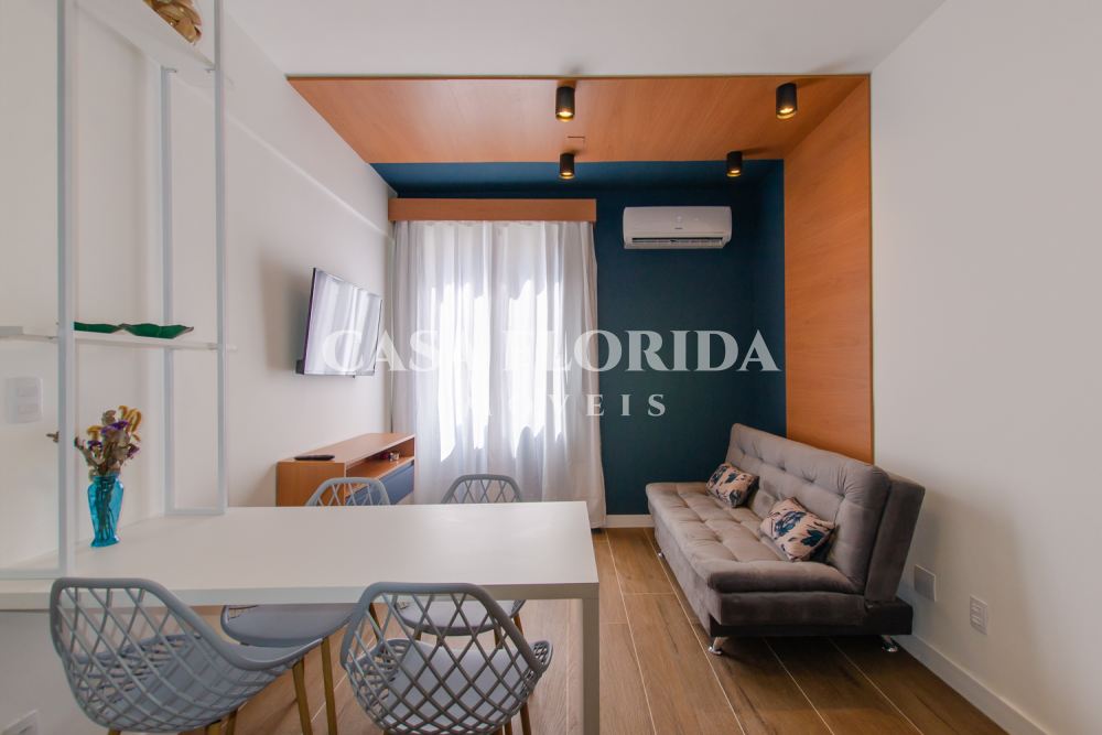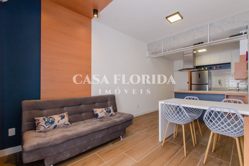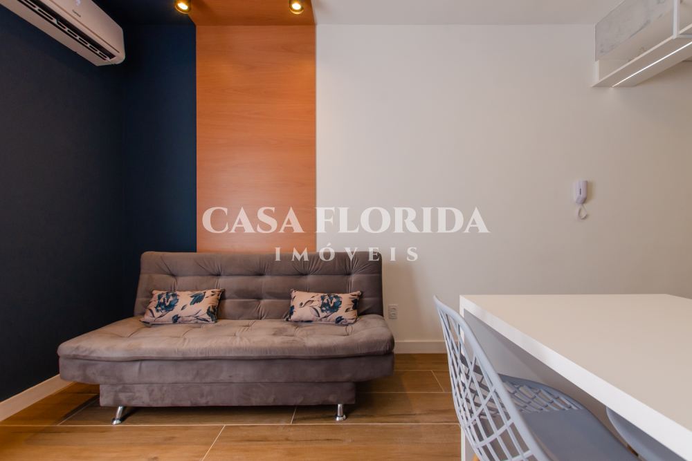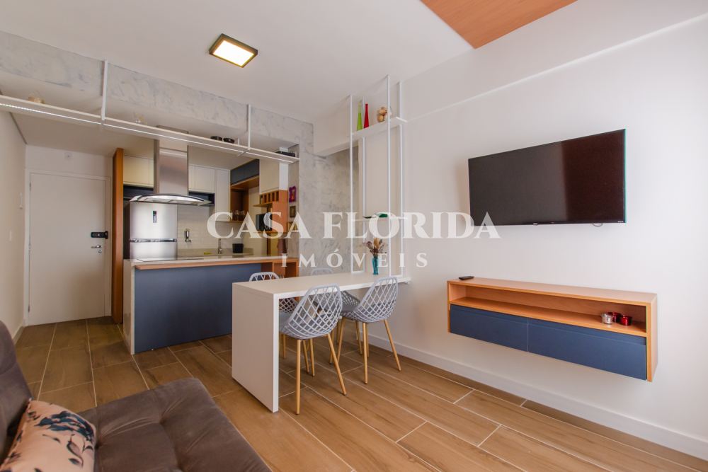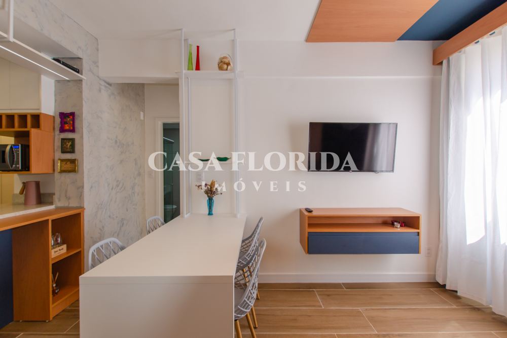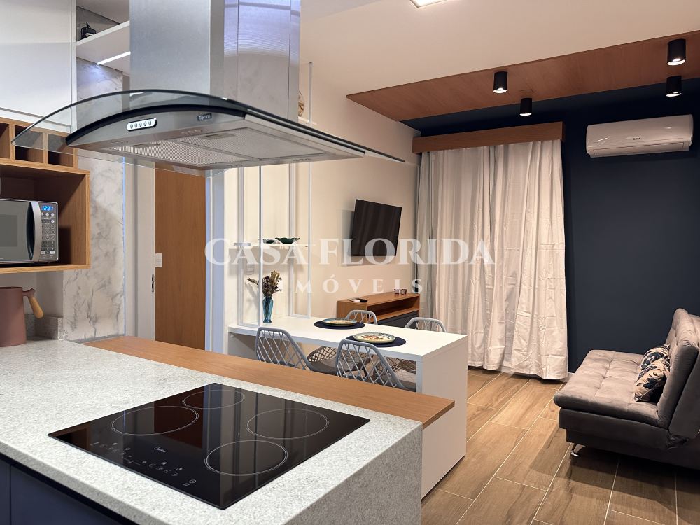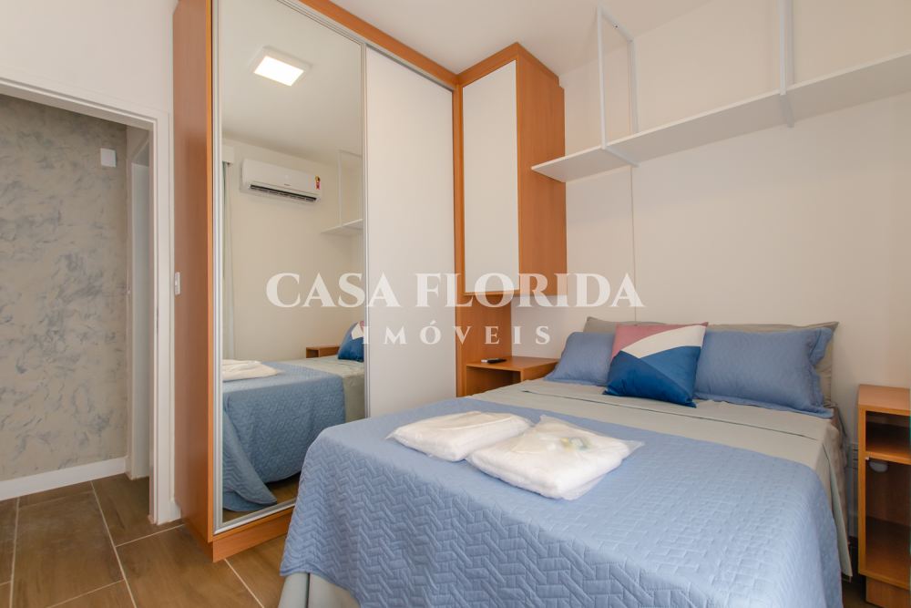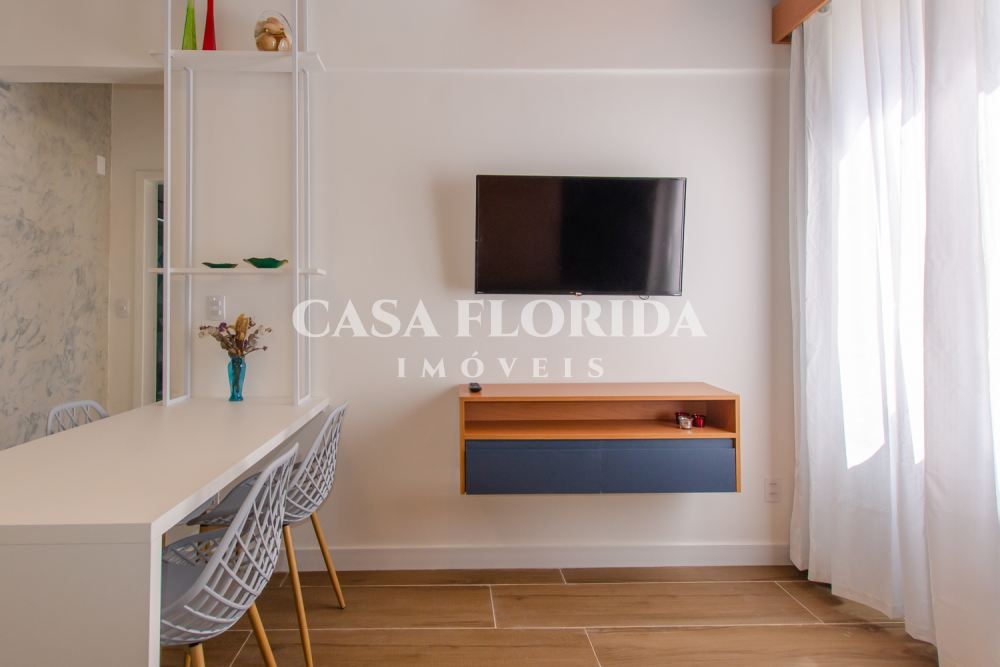 Valor 695 mil reais. Apartamento absolutamente pronto para morar com muito conforto e qualidade, com 42 m2 privativos com dois quartos (um de casal e um de solteiro menor), totalmente reformado (incluindo elétrica e hidráulica – tudo foi trocado), no centro, parte alta da Rua Felipe Schmidt. Apartamento completo, com todos móveis e eletrodomésticos novos (lavadora e secadora, forno elétrico, micro, fogão, geladeira, ar condicionados, armários sob medida, marcenaria completa, televisões, internet, tv à cabo, etc.), comprados há 90 dias. Apartamento atualmente (há 90 dias) utilizado por locação por temporada (Airbnb/Booking). Apartamento não tem garagem, mas pode-se alugar no prédio ou no Clube Lira (50 metros).