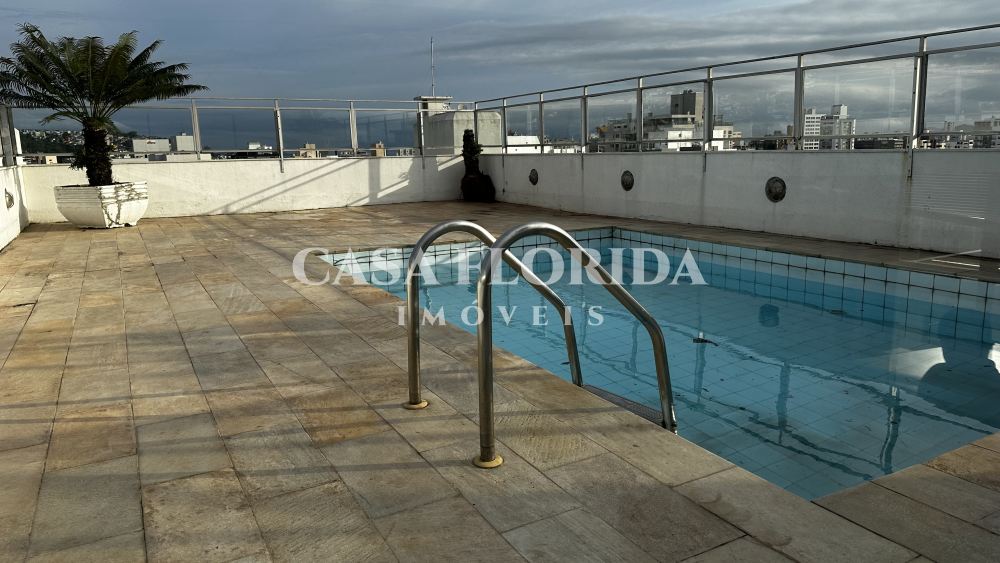 Aproximadamente 6 mil reais o m2. Barbada. Enorme cobertura duplex com 295 m2 privativos. Embaixo: 3 dormitórios transformados em 2 dormitórios, sendo a suíte com closet + 1 dormitório com banheiro que atende, na área íntima. Cozinha, área de serviço e dependência completa. Sala de estar e sala de jantar. Em cima: sala, banheiro, área de cozinha gourmet com churrasqueira, pátio aberto com maravilhosa piscina. 2 garagens com matrículas individuais. Na parte nobre do centro, muito próximo ao Hippo Supermercado.