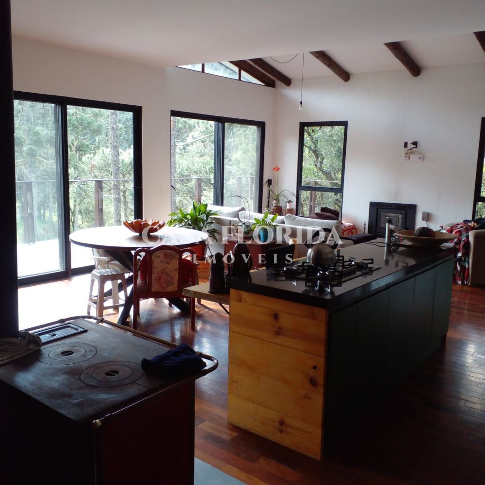 Possui excelente casa de 250 metros quadrados, com rede elétrica bifásico, telha shingle, 2 suítes, 2 quartos, banheiro social (banheiros com aquecimento no piso controle digital), venezianas elétricas, portas e janelas marca Esquadrimed vedadas, sala e cozinha conjugados com deck na frente, aquecedor de água a gás (marca Rhen digital), calefator com ventilação, fogão a lenha (venax linha imperial), ilha com balcão em granito e cooktop, despensa, lavanderia, receptivo com lavado e canil. Cozinha com móveis planejados. Garagem grande para 2 carros.